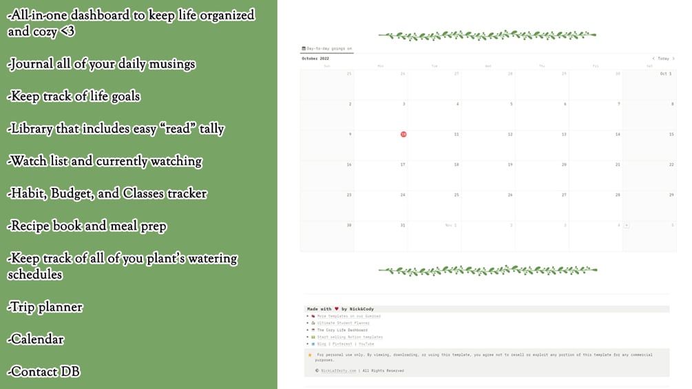 Link to duplicate The Cozy Life Ultimate Dashboard on Notion